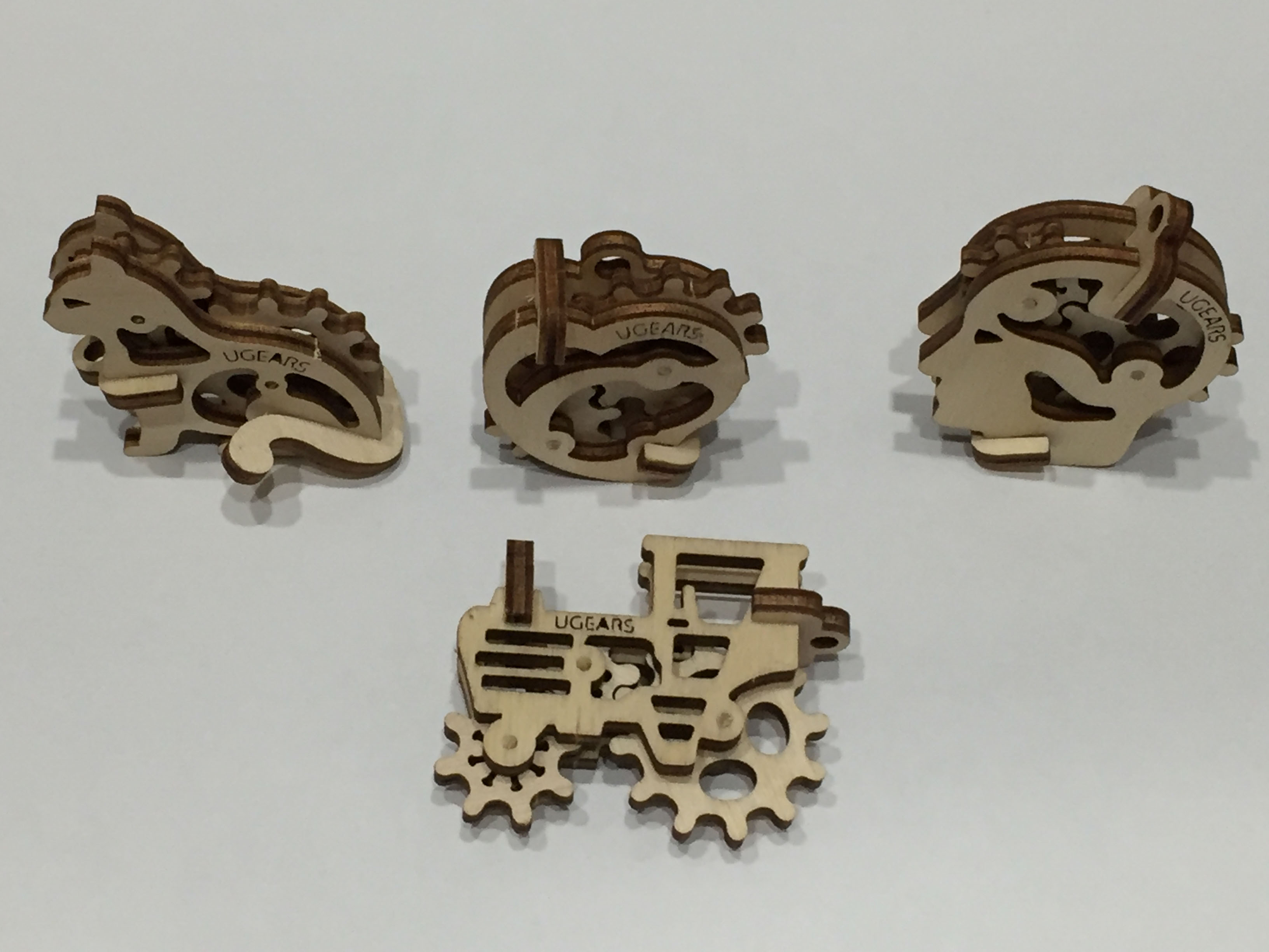 Tribiks - 4 different models: tractor, cat, head, heart. The best model for those who are just beginning to learn UGears. Easy to assemble, compact design. A great souvenir for children and adults. It can be used as a trinket for your keys or bags.